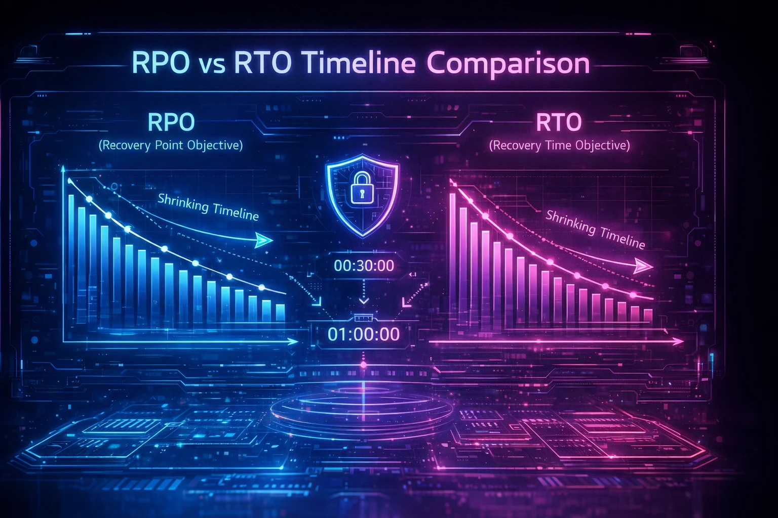 Two metrics define that exposure: RTO measures the maximum downtime before business impact becomes unacceptable, while RPO marks the point in time to which data must be recoverable. Scalable backup architectures shrink both by using more frequent capture points and automated recovery workflows.